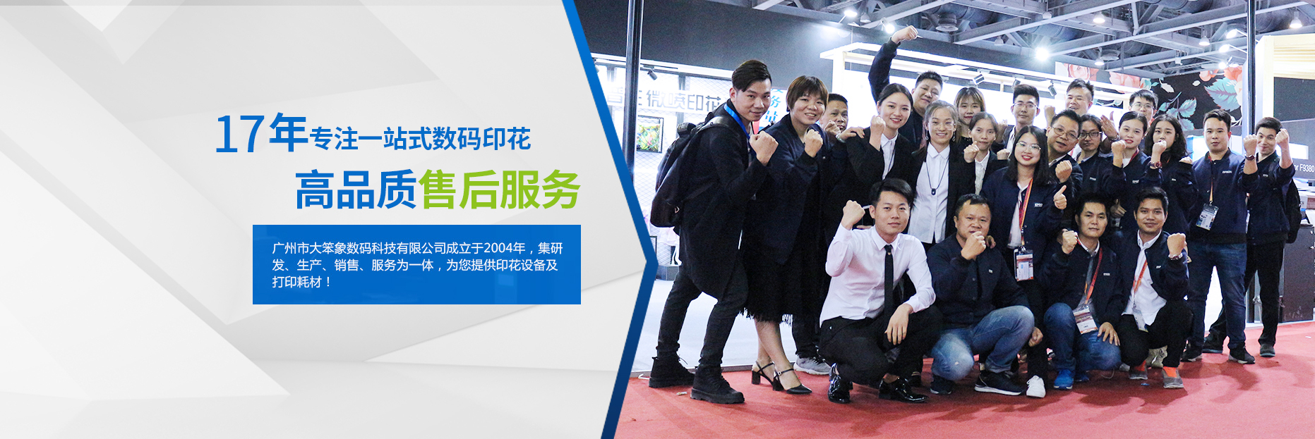 廣州市大笨象數(shù)碼科技有限公司成立于2004年,是目前中國(guó)領(lǐng)先的集研發(fā)、生產(chǎn)、銷售、服務(wù)為一體的一站式數(shù)碼印花企業(yè)。我司產(chǎn)品主要應(yīng)用于服裝紡織、鞋材、家居、廣告禮品、個(gè)性化定制等相關(guān)領(lǐng)域。公司成立10多年來,一直秉承“客戶贏、大笨象才贏”的雙贏經(jīng)營(yíng)理念。